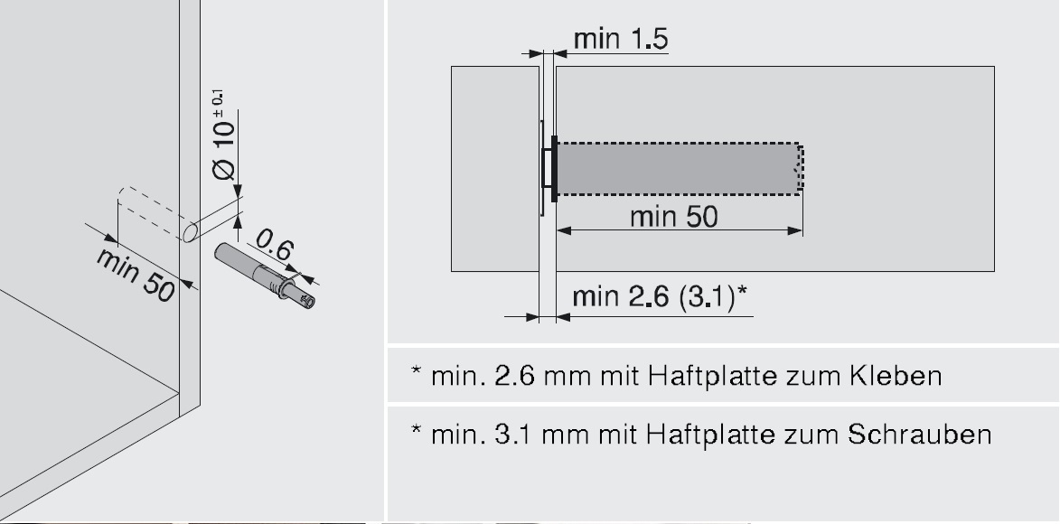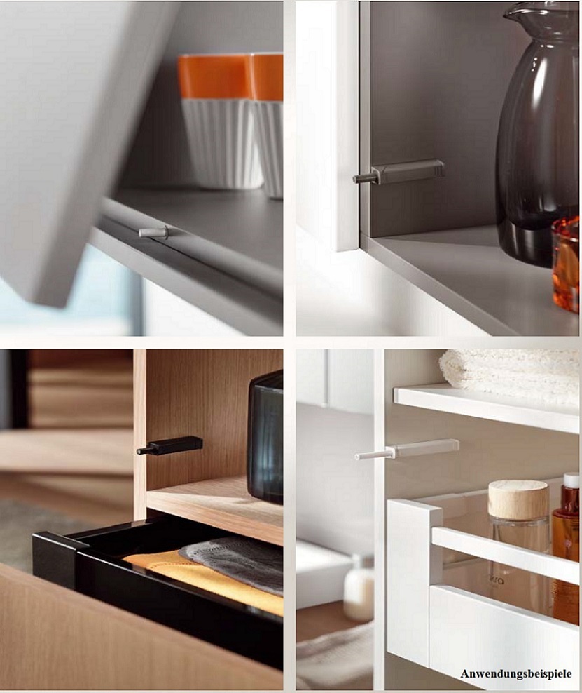 TIP-ON kurz platingrau für aufschlagende Türen bis Höhe 1300mm, inkl. Haftplatten